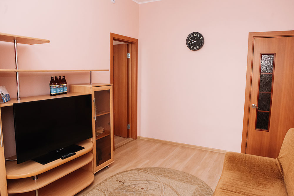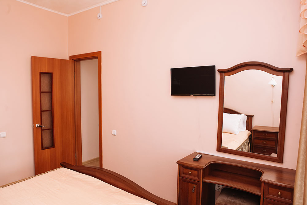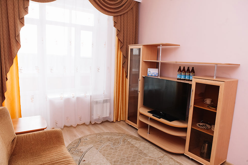 2 осн. места. 2 доп. места. Балкон. Мебель: вешалка, диван, кресло (2), кровати односпальные, прикроватные тумбочки, столик журнальный, шкаф. Оборудование: кондиционер, музыкальный центр, набор посуды, сейф, телевизор, телефон, утюг, холодильник, чайный набор посуды, электрочайник. Санузел: с ванной, тапочки, туалетные принадлежности, фен, халат. Сервис: Wi-Fi бесплатно, смена полотенец, смена постельного белья, уборка номера, услуги телефонной связи по территории отеля.