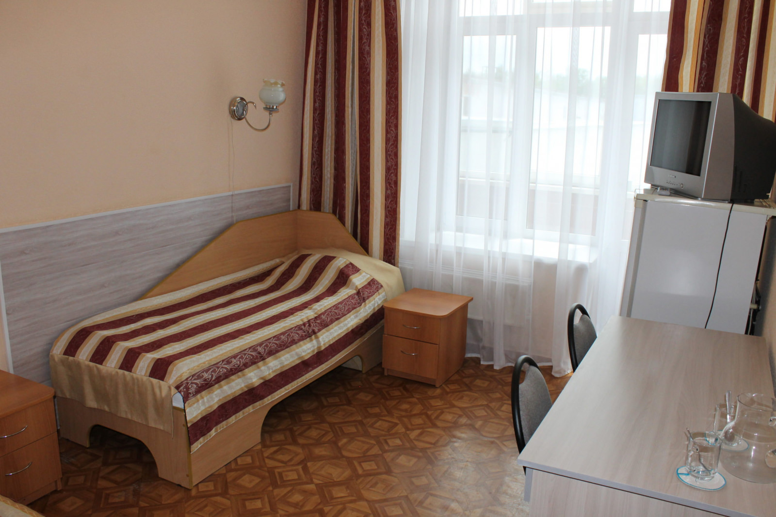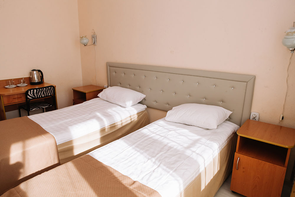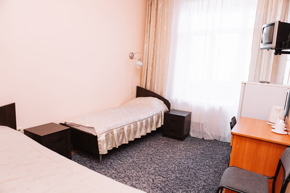 2 осн. места. 1 доп. место. Балкон. Мебель: вешалка, зеркало, кровати односпальные, прикроватные тумбочки, стол, стулья, шкаф. Оборудование: телевизор, холодильник, чайный набор посуды, электрочайник. Санузел: с ванной, туалетные принадлежности. Сервис: Wi-Fi бесплатно, смена полотенец, смена постельного белья, уборка номера.